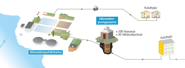 Viemäriverkostoon kuuluu yli 130 jätevedenpumppaamoa Vaasan ja naapurikuntien alueella.